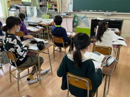 6年生の研究授業です。国語科の説明文「町の幸福論」です。筆者の主張に迫る授業になりました。