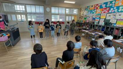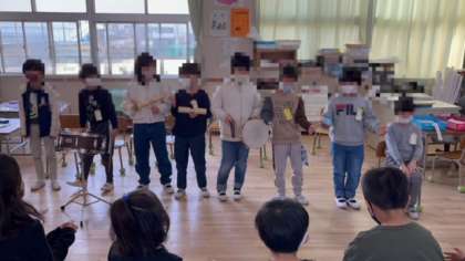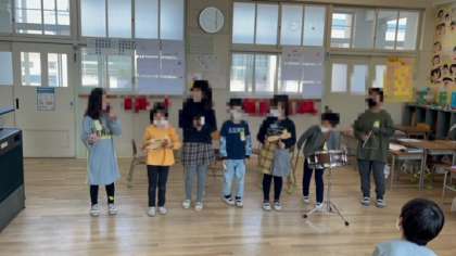 2年生は音楽で「かぼちゃ」を演奏していました。いろいろな楽器の音を重ねて、その重なりを楽しむ学習です。歌いながら上手に演奏できました。