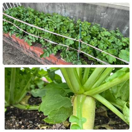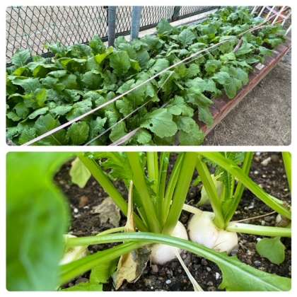 学習園には、大根と蕪も植えてくれています。グリーンキーパーさんと給食委員会の子どもたちが世話をしてくれています。