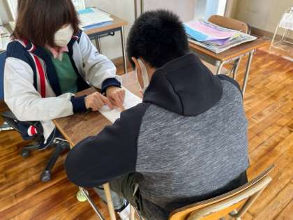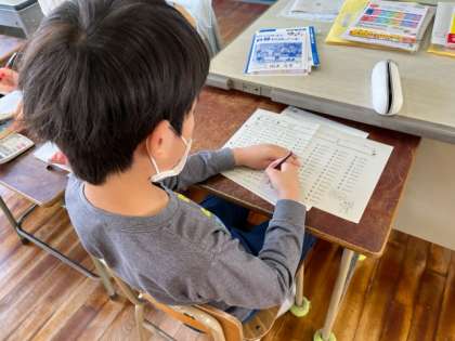 ひまわり学級のみんなが算数科の学習をしていました。プリントを使ってどんどん問題を解いていました。