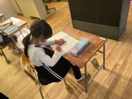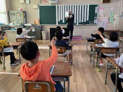 1年生で国語科の研究授業を行いました。たくさんの先生に見てもらって、子どもたちは緊張していました。そんな中でも、しっかり考えて発言したりワークシートに書いたりして頑張りました。