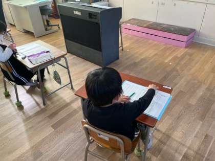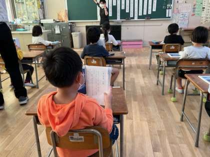 「いろいろなふね」という説明的文章の学習です。姿勢も良く学習に集中できていました。