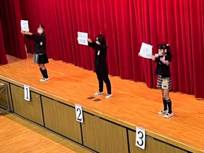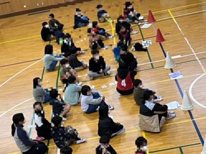 今朝の集会委員会の活動は、縦割り班対抗で先生クイズでした。声を変えた先生にインタビューをして先生の名前を予測します。全問正解できたかな?