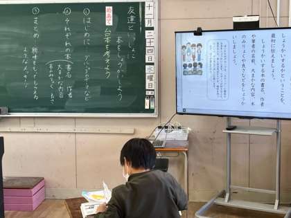 5年生国語科の学習です。それぞれ紹介したい本を読んで、内容やおすすめとのところ、意見などを交えて本の紹介文を書きます。