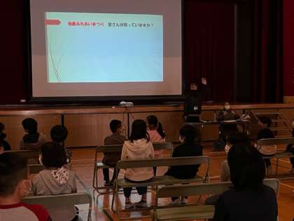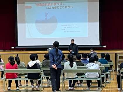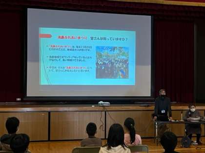 5.6年生が総合的な学習の時間に「池島ふれあいまつり」に関する学習をしました。池島寮の先生と地域見守りコーディネーターの方に来ていただきました。