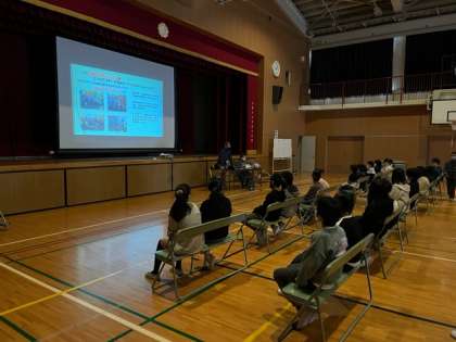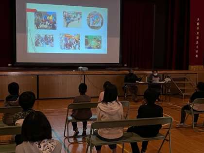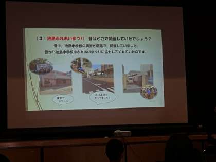 40回目がいまだ実施できていない池島ふれあいまつりの歴史や地域の人々の関わり方、池島小学校の子どもたちの関わり方のお話を聞きました。また、地域の方々の悔しい思いにも触れました。子どもたちの真剣な姿にお二人も喜んでくださいました。