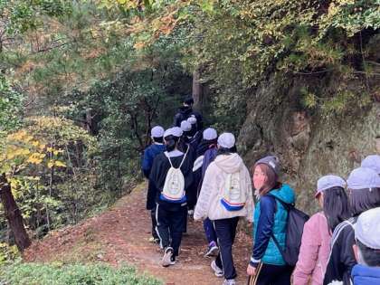 先程少し雨が降りましたが、山登りに出発する時には日が差していました。足元に気をつけて登山開始です。