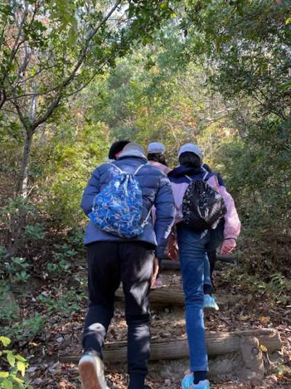 山道は整備されていますが、段差がきついです。でも、登って行くと素晴らしい景色に到達します。