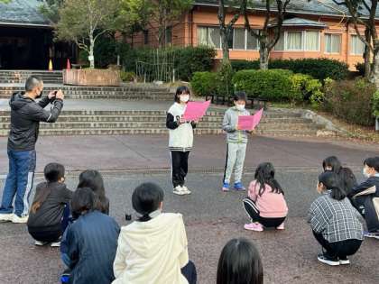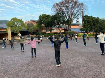 朝の集いです。よく眠れた子もそうでもない子もしっかり体操をして体を起こしました。今日の活動の開始です。