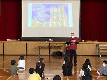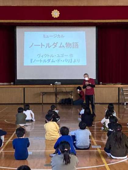 12/2に来ていただく『劇団ショーマンシップ』の方が事前のワークショップを行ってくださいました。パントマイムや歌の練習もしました。