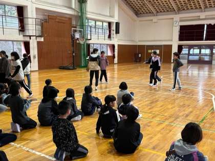 予定より順調に活動が進んできたので、閉舎式までの時間に体育館を借りてレクレーションです。まもなく宿舎とお別れです。