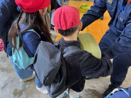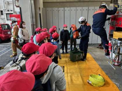 重いホースを持って消防士さんは遠くまで走ることを聞いてびっくりしていました。たいへんな仕事です。