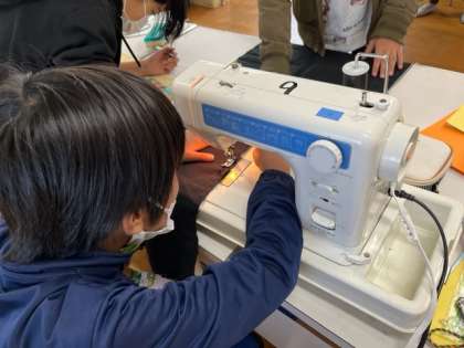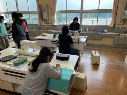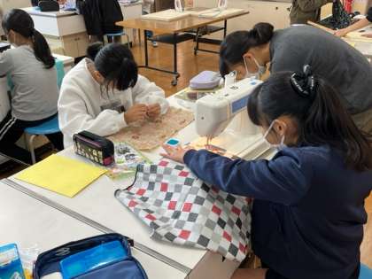 6年生が家庭科で製作しているお弁当包みがかなり進んできました。アイロンをかけたりミシンで仕上げたり、協力しながら進めていました。