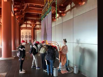 難波宮の昔には今とは全く違う大阪があったようです。パネルを読んで調べている子がたくさんいます。