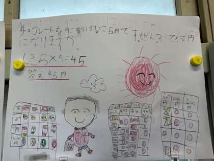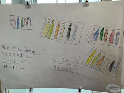 2年生が作ったかけ算の問題です。かける数とかけられる数をきちんと理解して作れています。