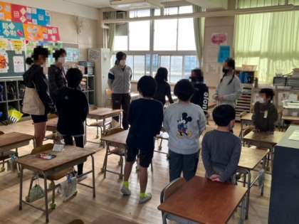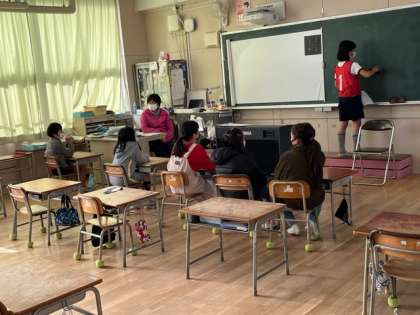 今日の子どもたちは大忙しです。昼休みには縦割り班で行うあいさつ運動の打ち合わせをしていました。朝から元気な挨拶をするための練習をしている班もありました。