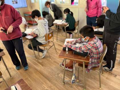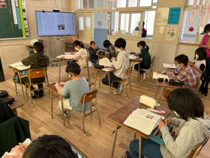今日のめあては「資料の効果について考える。」です。初めに一人で読み取ります。写真などの資料はどんな効果があるのでしょう。