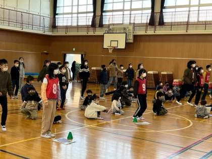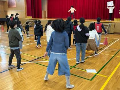 今朝は縦割り班でなかよし集会です。広報委員会の人と足ジャンケンをしました。最後まで勝ち残った人は大きな拍手をもらいました。その後、代表委員会から赤い羽の募金活動のお知らせがありました。16.17日に行います。