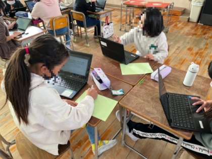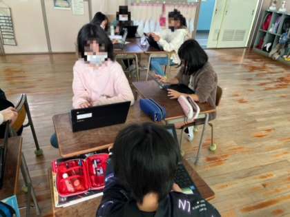 4年生が社会科の時間に、「お祭りのプレゼンテーション」を作っていました。それぞれのスライドを共有して班で1つのスライドにしていくようです。