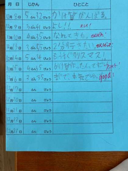 毎日毎日がんばっています。努力できることが本当にすばらしい力です。