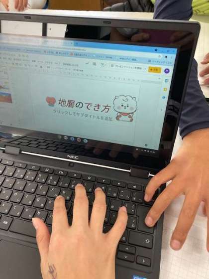 「大地のつくりと変化」についてプレゼンテーションするための準備を一人一台端末を使って進めています。どんな発表になるか、とても楽しみです。