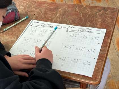 いよいよ2学期も、残り4日です。4年生が算数のまとめの学習をしていました。かけ算割算の筆算の復習をしていました。