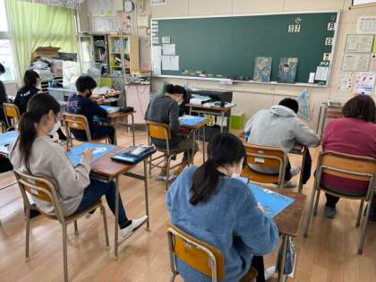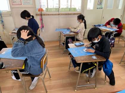 6年生は版画の学習をしていました。印刷した時の絵をイメージしながら彫刻刀で彫り進めていました。仕上がりが楽しみです。