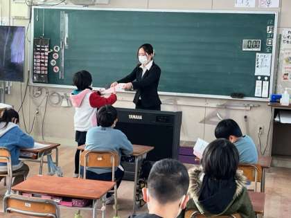 教室に戻って通知表をいただきました。2学期に頑張ったことを担任の先生から褒めてもらいました。
