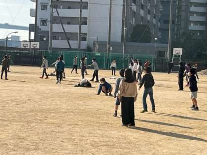 今日は暖かい日差しが気持ち良く、たくさんの子どもたちが運動場で遊んでいました。学年を越えて仲良く遊んでいますね。
