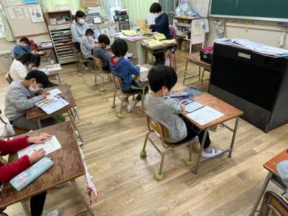 2年生は、3学期のめあてを考えていました。算数の九九や国語の漢字、勉強全部、いろいろがんばる子たちです。