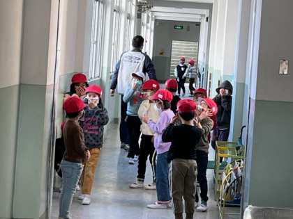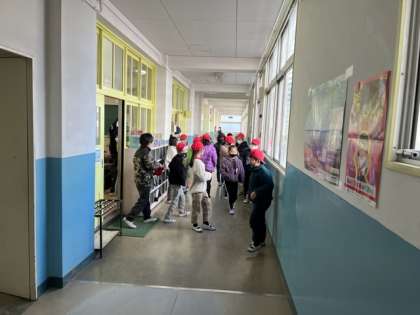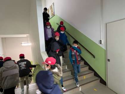 > 今日は火災を想定した避難訓練をしました。避難の時にはしゃべらず、口をふさいで素早く避難できました。