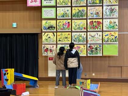 それぞれの作品にじっと見入っている子がたくさんいました。とてもいい作品ばかりです。直接皆様に見ていただけなかったことが残念です。