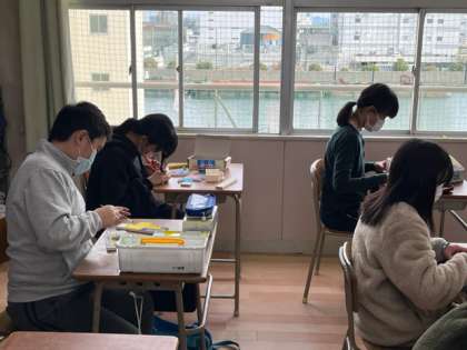 6年生が図工科の時間にテープカッターを作っていました。これは卒業制作です。思い出の作品になりますね。