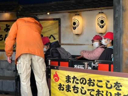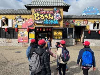 冬場でも営業しているお化け屋敷に吸い込まれていくグループを発見しました。抽選でお化けと記念撮影できるらしいです。