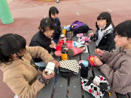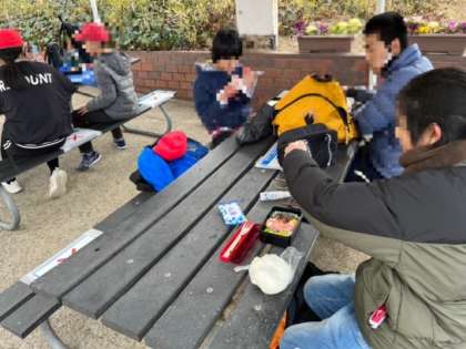 お弁当をしっかりいただきました。ずっと楽しそうです。ごちそうさましたら、自分たちが冷蔵庫に入って行きました。寒!