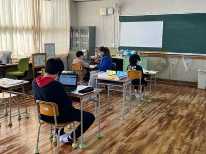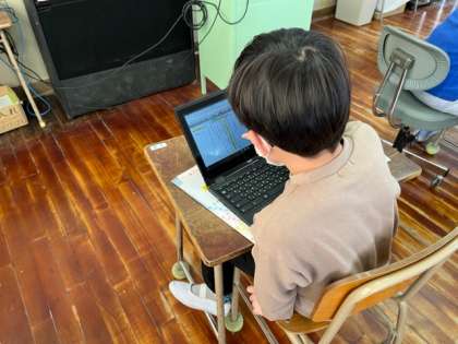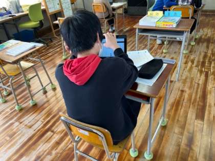 ひまわり学級では、学習者用端末を使い文章を音声で聞いています。長い文章は読みにくいですが、こうすると頭に入るようです。