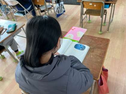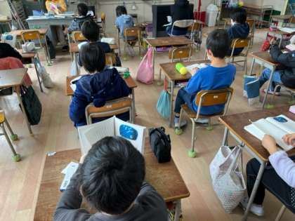 3年生は、「ゆうすげ村の小さな旅館」を音読していました。物語に隠された仕かけを見つけるのが課題です。繰り返し読むと何かが見つかるようです。