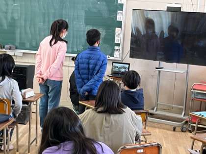 今日3月4日は、全校集会「6年生を送る会」です。全員で集まるのは中止して、オンラインで開催しました。