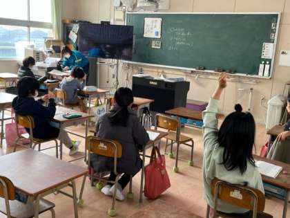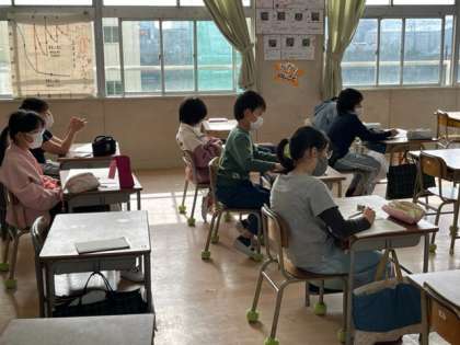 3年生が文章を書き取らという学習をしていました。メモを取りながら聞くのは、とても難しいです。大切な事柄をメモするためにはどうするか、うんと悩んでいます。