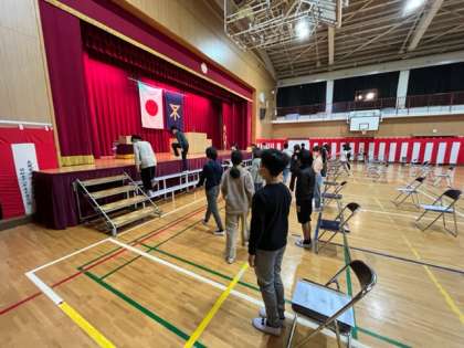 本日は、卒業式の予行を行いました。5.6年生が入場から順に実施しました。