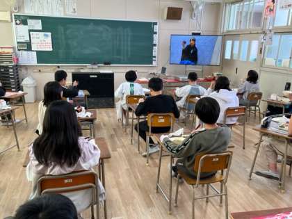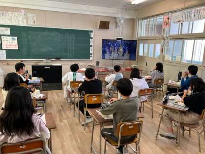 給食の時間に、保健委員会からのお知らせの動画を視聴しました。手洗い、消毒、爪など気をつけてほしいことを童話をモチーフにした動画で呼びかけています。