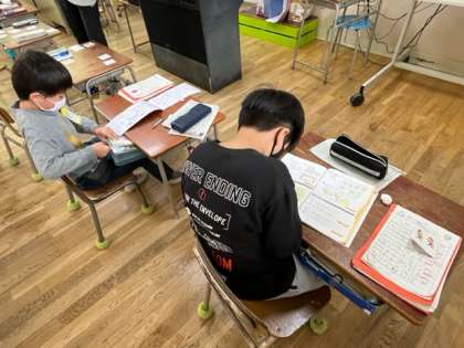 2年生が算数のまとめの学習をしていました。早く終わったひとは、みんなのためにお仕事をしていました。学年の最後までがんばるね。