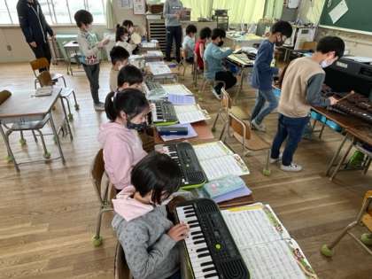 後半はみんなで合奏です。木琴、鉄琴、タンバリン、小太鼓、キーボードなど、とても上手に演奏しました。