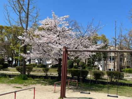 今日4月4日は晴天になりました。池島公園のさくらです。満開でした。