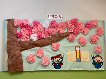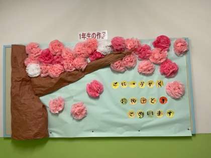 階段の掲示板には、入学を喜ぶ掲示をしています。明日の入学式を教職員、子どもたちみんなで楽しみにしています。