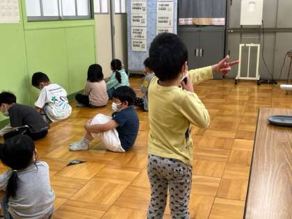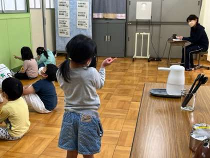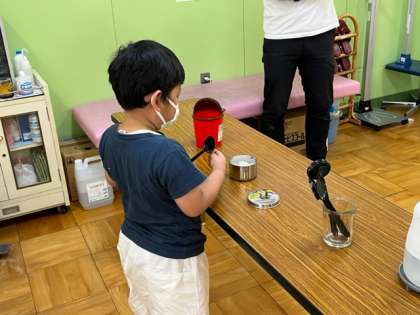 今日は入学して最初の視力検査をしました。手指の消毒をして、検査します。終わったら、遮眼子を消毒します。みんなきちんと覚えて検査できました。