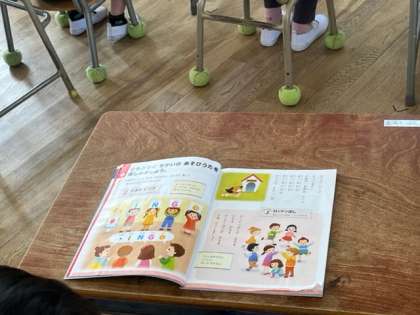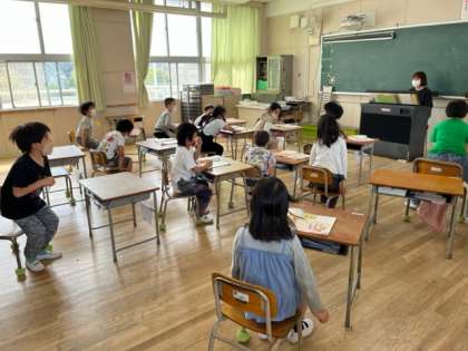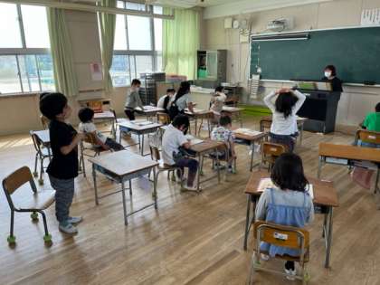 2年生の音楽科の時間。「ロンドン橋」の歌に合わせて体を動かしていました。動きながら歌うと楽しいですね。