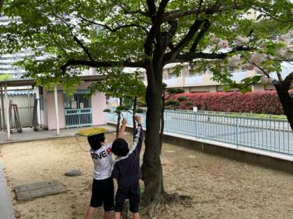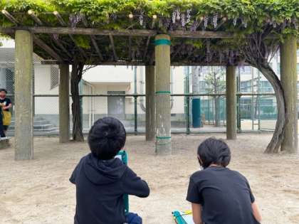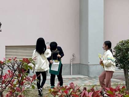 4年生の理科の時間に、植物の観察をしていました。春夏秋冬と続けて観察すると、どんなふうに変わっていくのかを調べていきます。