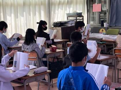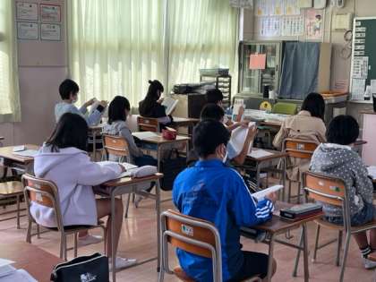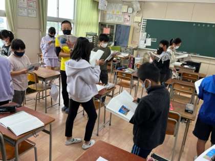 6年生の国語科「イースター島にはなぜ森林がないのか」の音読をしていました。きちんと座って、歩きながらなど音読に変化を持たせながら学習していました。
