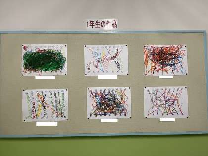 1年生が、パスを使ってぐるぐる線を描きました。途中で途切れないように慎重にかいています。